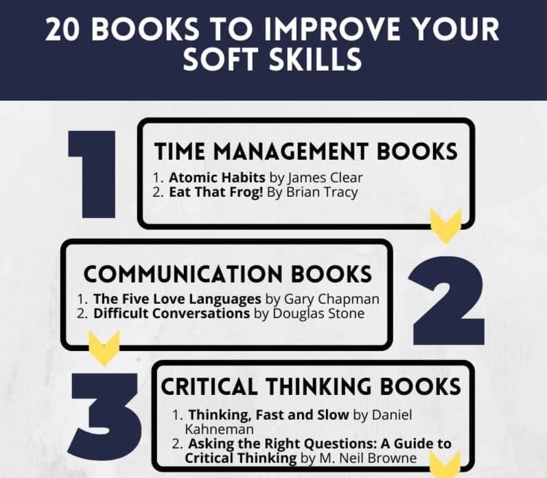 Grab a FREE copy of this infographic of 20 books that will help to improve your soft skills ASAP!